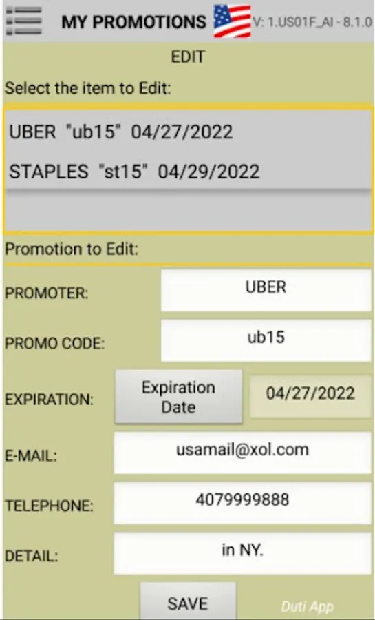 An application created for you, who uses and receives discount coupons, promotional codes, offers, promotions, discount by various sources such as email, SMS, Social Networks, and by other vehicles such as tablet, PC, smartphones etc. .... so that you save them on your smartphone and can use them at the time you need, without having to consult at the time of use, your email or the other means of receiving this promotion, of this coupon.