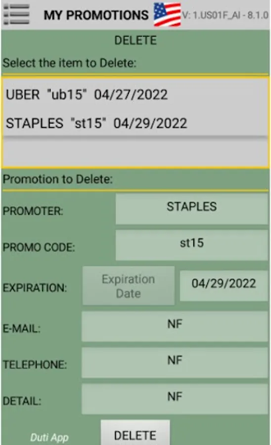 The expired promotion cannot be used as it will not be accepted by the promoter. Then it must be deleted, to finish the warning and free up space on the device. Using the 'menu' the "DELETE" option.