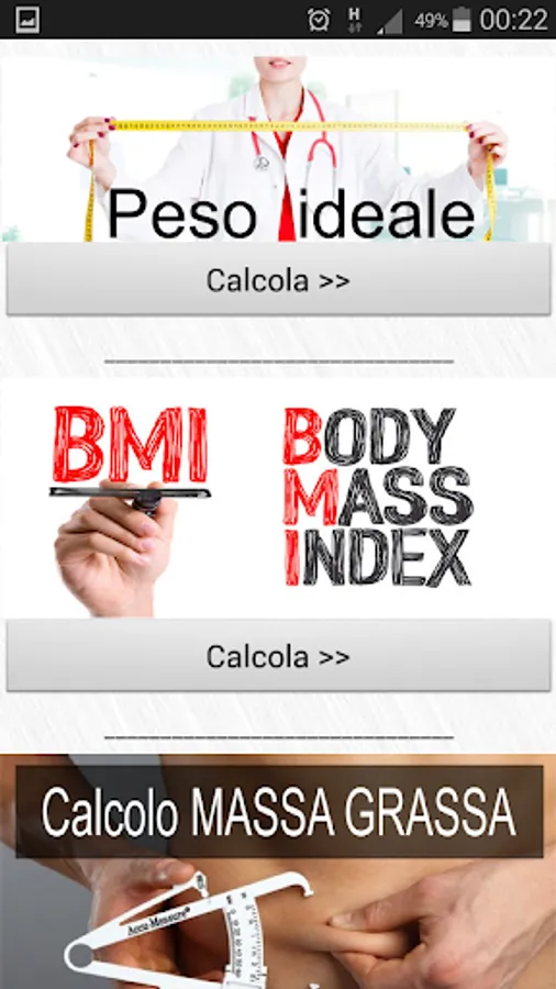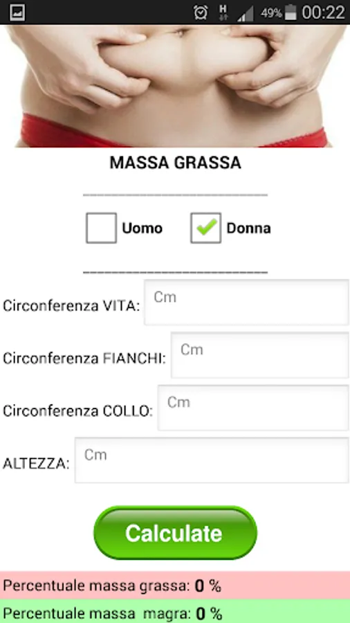 There are specific formulas that are used to calculate excess body fat, with this app it will be possible to calculate the percentages of fat and lean mass by applying the WILMORE and BEHNKE formulas.