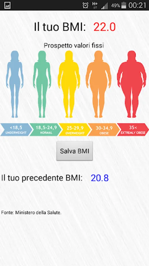 The ideal weight and weight form according to the BMI index (Body Mass Index)