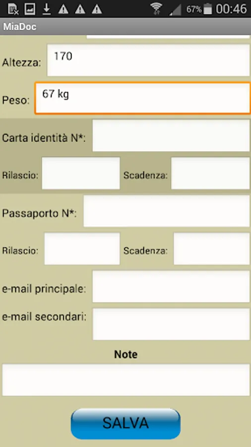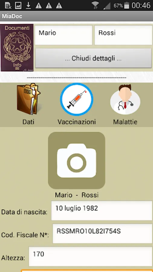 Always keep at hand all your data and those of your loved ones in a simple and fast way, in particular it stores: Cod Fisc, dates of birth, email, n * identity card, n ° passport, notes, Vaccinations, Diseases.