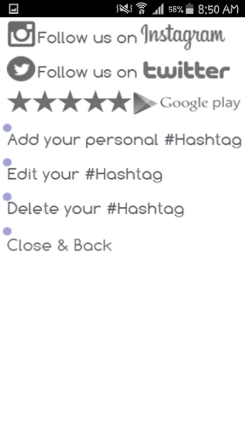 - Create your #hashtags propis save them, edit them, create your class and will not have to escibirlos every time you post a photo.