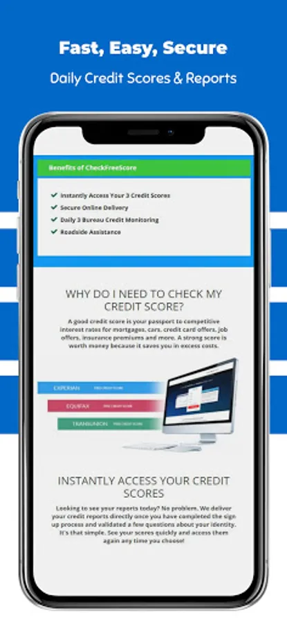 This is the easiest way to get all 3 credit scores and credit reports from your phone or tablet. Check your credit score for free using our new app. We offer unlimited access to all three credit reports and credit scores and complementary credit monitoring to ensure you are not a victim of fraud and identity theft.