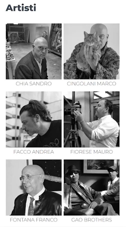 The gallery has active productions, events, exhibition and editorial projects with Italian and international artists of the caliber of Daniel Spoerri, Hermann Nitsch, Emilio Isgrò, Marco Cingolani and Liu Bolin. Among the institutions with which he has collaborated, to mention the MART in Rovereto, the National Gallery of Modern Art in Rome, the Venice Biennale, Palazzo Ducale in Mantua, the Bocconi University in Milan, the MUDEC Museum of Cultures in Milan, the Borghese Gallery in Rome, the Royal Palace of Caserta, the Achille Forti Modern Art Gallery in Verona, the Vittoriano Complex in Rome.