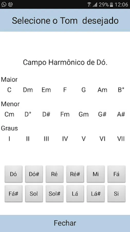 We work with 12 major and 12 minor tones which are: C, C sharp, D, D #, E, F, F #, G, G #, A, La # and Si.
