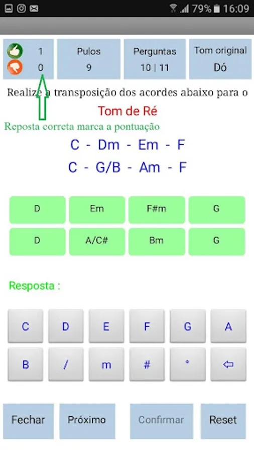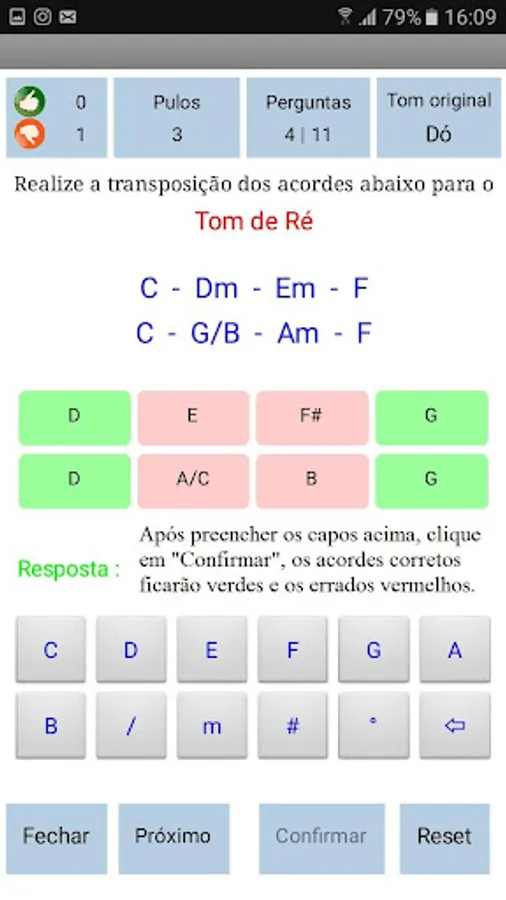 The application contains two logical musical sequences in which the user must carry out the implementation of the same respecting the chosen tone. In all exercises we provide the correct answer, so the user can identify their mistakes and successes.