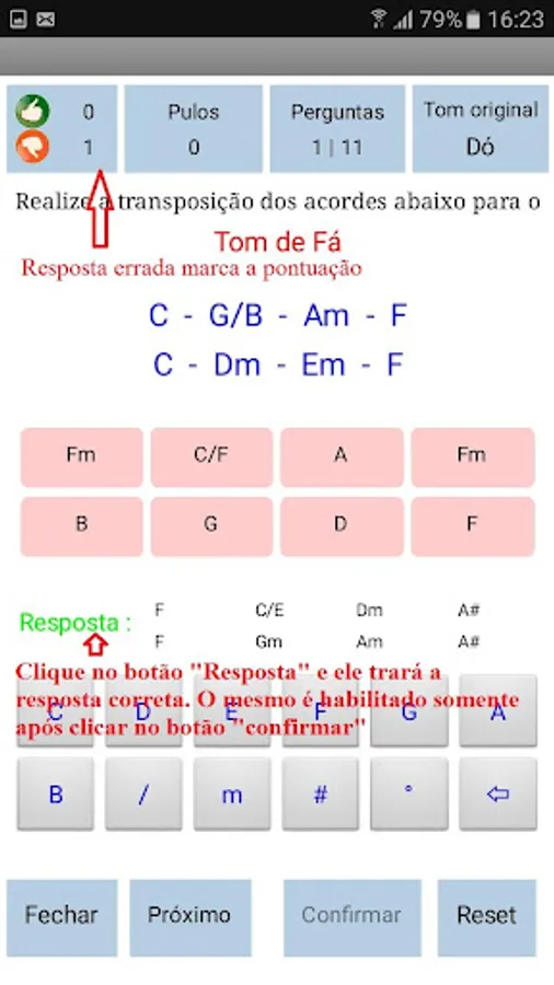 The application contains two logical musical sequences in which the user must carry out the implementation of the same respecting the chosen tone. In all exercises we provide the correct answer, so the user can identify their mistakes and successes.