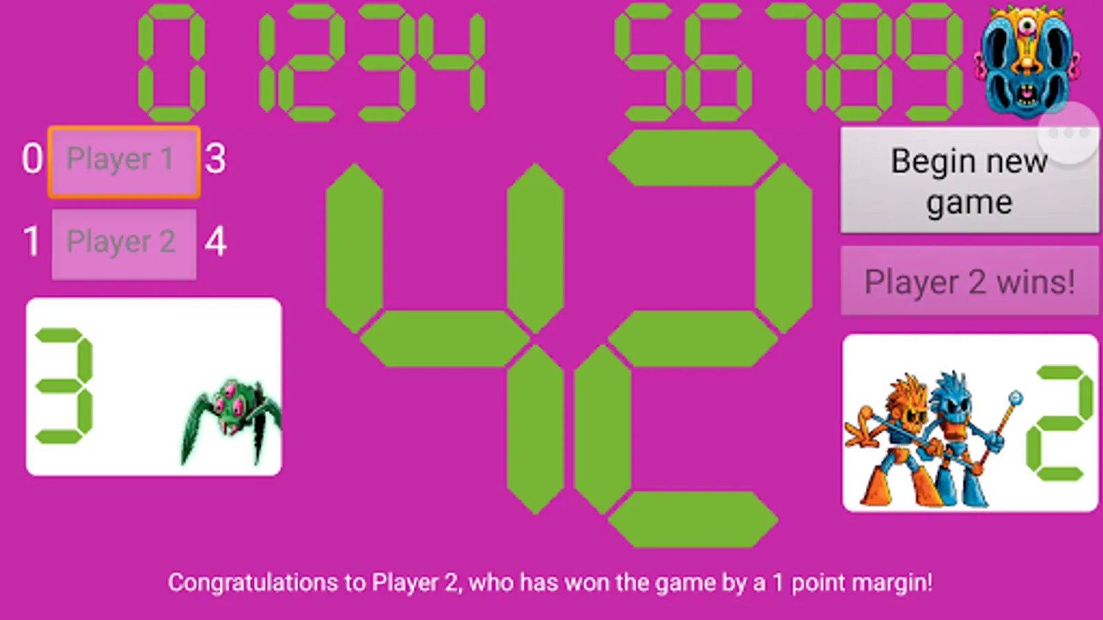 A digital version of the quickfire cosmic duelling game ‘Titans of Quantitas’, in which two players score points by creating a multiple of their secret titan number.