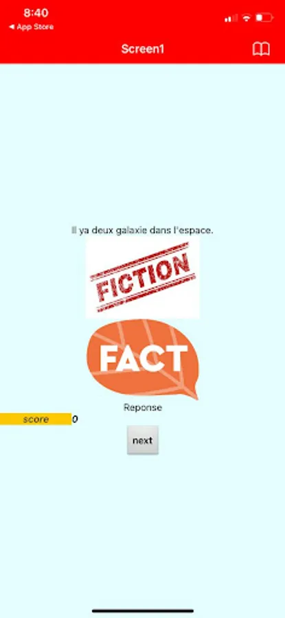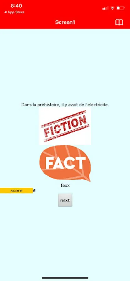 During every round of this game, the players will have a duration of 1minute, a score meter, and the "next" button. The players will have to guess whether the statement is a fact or a fiction. If they guess correctly, their score will increment by 1. If the time is up and the players don't make their choice, the answer will appear automatically.