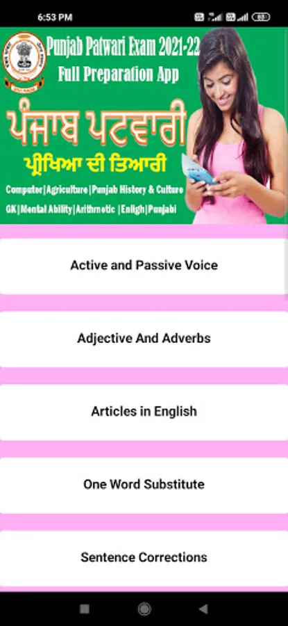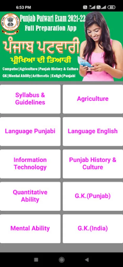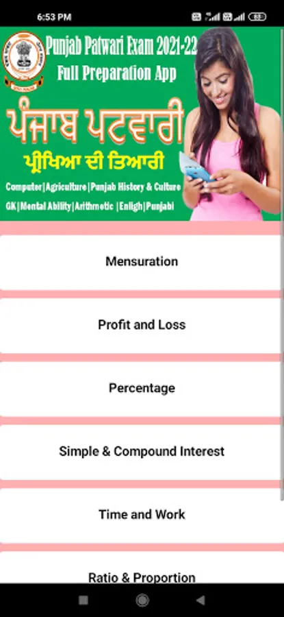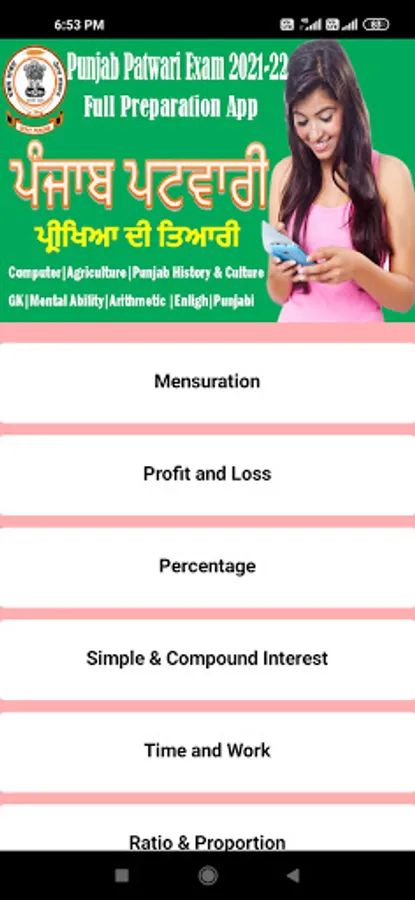 Punjab Patwari 2023-24 Android Application is as per the New Syllabus of the Patwari Exam 2023-24 so this App is the full preparation package for students and aspirants of Punjab Canal and Revenue Patwari.This application covered the Agriculture, Accounts,Computer and information Technology and Punjab History and culture and others parts of Gk, Arithmatic and mental ability is not covered due to the changing nature of the Gk and other topics. in this app you can make strong your agriculture,account,computer and history and culture of punjab, because we provide you most important and asked questions as MCQ with explainations and did our level best to provide you the best study material so that you can crack and be first in marit list the patwari exam this year.