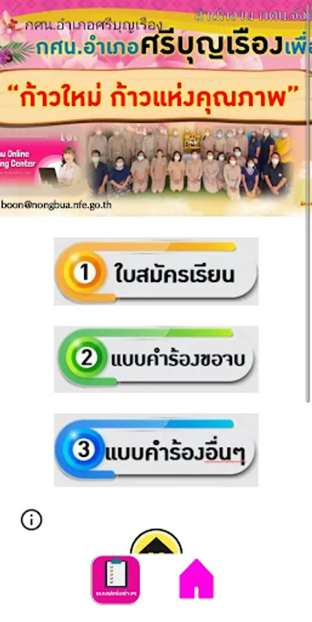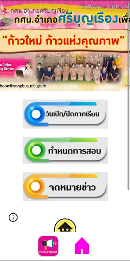 Non-National Education, Sibunruang District It is an online classroom and online activity app. where students can study and learn various information online all the time, such as viewing the academic calendar Register for classes View grades Take online classes Follow the news/activities of the NFE.