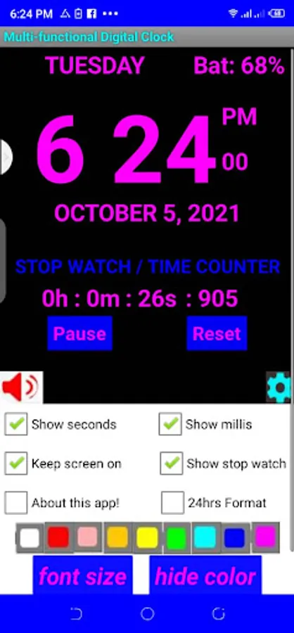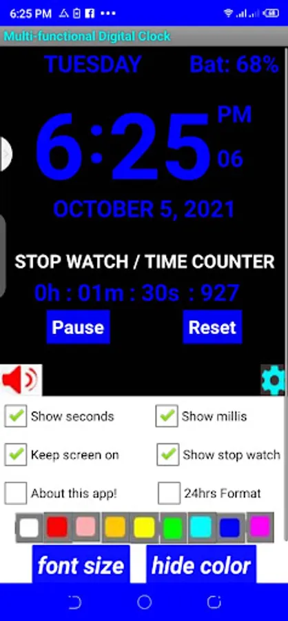 This app is multi-functional digital clock. It is useful to get sense of time at a glance. Its big font makes it easy to view at a glance. You have the privilege of selecting the usage options in the setting. By default, the screen will not enter sleeping mode while the app is on, but this function can be changed in the setting. You can as well change the font size and color in the setting. Tapping the voice button gives you an audible announcement of the current time. You may contact us through: supremefaptech@gmail.com for any enquiry or questions