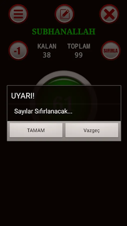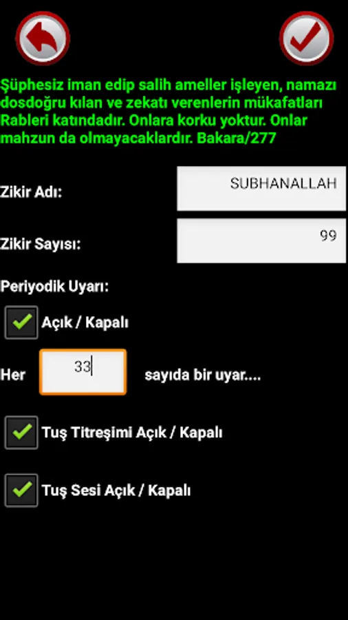 ZikirMatik / Tesbih uygulaması ile belirlediğiniz sayı kadar zikir çekebilir, dilerseniz "Periyodik Uyarı"yı aktif hale getirip, belirlediğiniz sayı aralıkları ile uygulamanın sizi ekran mesajı ve yoğun titreşim ile uyarmasını sağlayabilirsiniz.