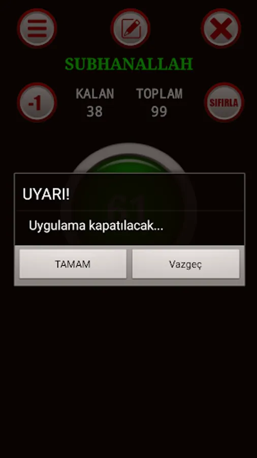 Ayrıca yanlışlıkla zikir tuşuna basmanız halinde -1 tuşu ile geri alabilirsiniz.