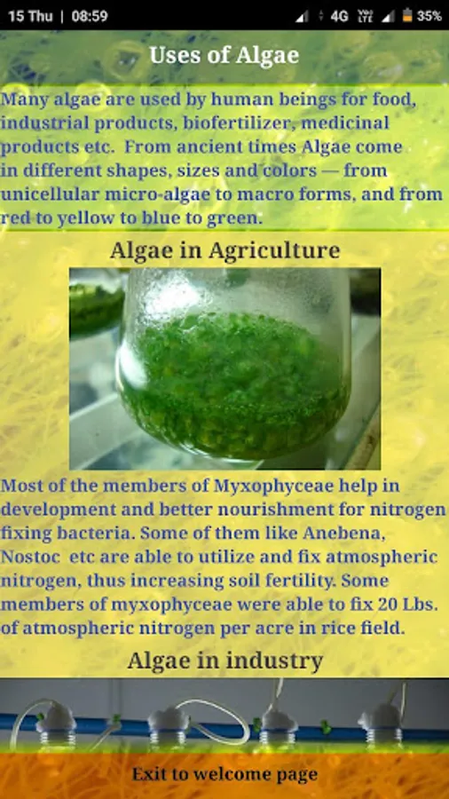 Many algae are used by human beings for food, industrial products, bio-fertilizer, medicinal products etc. from ancient times. Algae come in different shapes, sizes and colors — from unicellular micro-algae to macro forms, and from red to yellow to blue to green.
