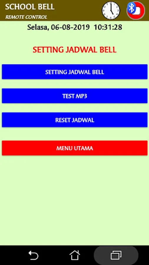 Simply by entering the desired time, the Bell will sound automatically. Currently, this sophisticated bell software has also been equipped with two languages namely Indonesian and English.