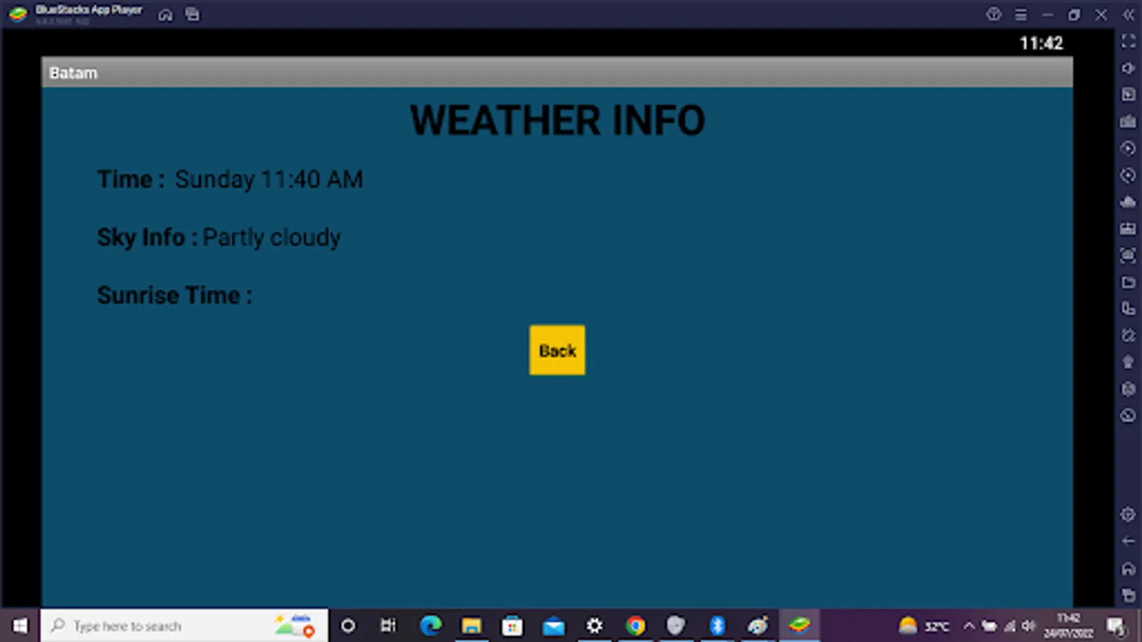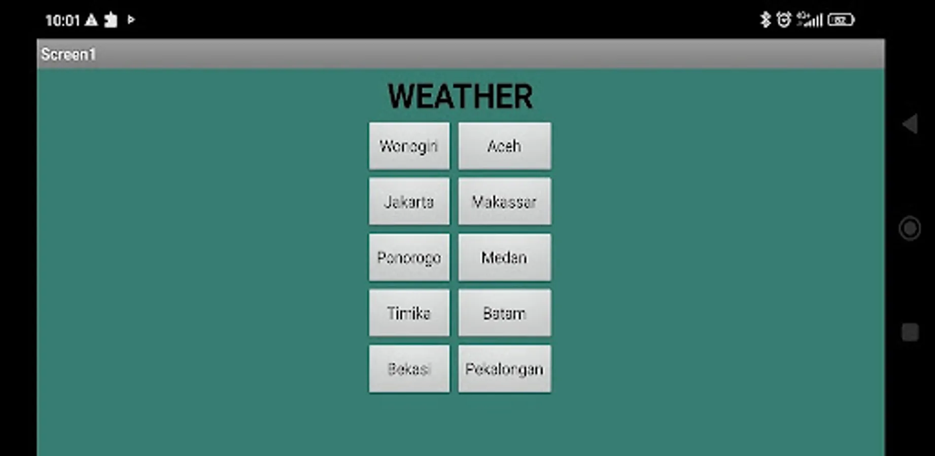 This application was created so that you can find out how the weather and time in various regions in Indonesia are. Such as Pekalongan, Jakarta, Batam etc