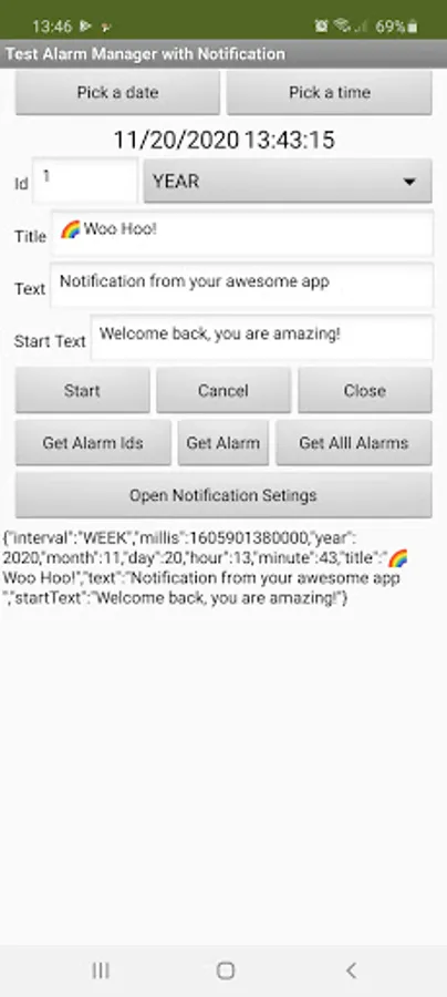 App Inventor Alarm Manager with Notification and Autostart Extension Test project to test the alarmmanager extension