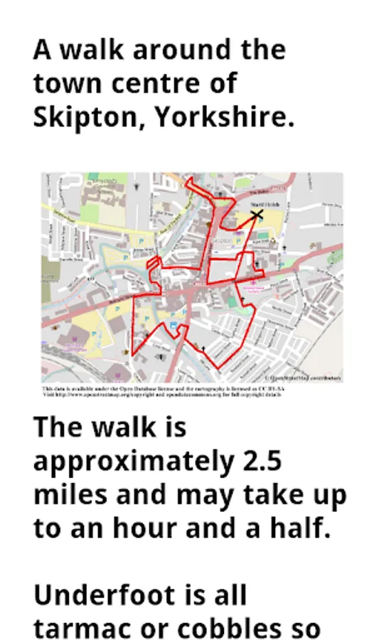 It is all on hard surfaces and can take up to 1.5 hours, but is very steep in parts and may be unsuitable for wheelchairs. The app shows you all the ‘points of interest’ along the way.
