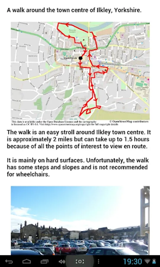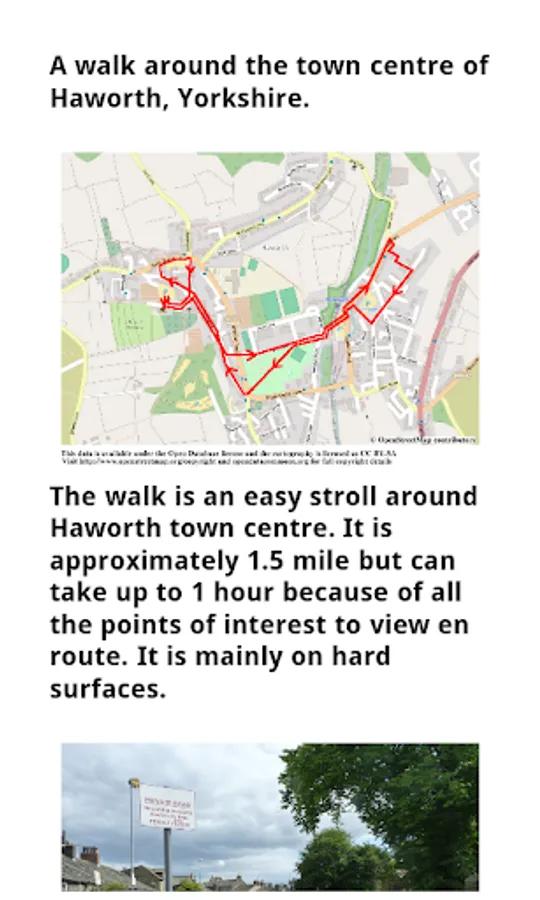 It is all on hard surfaces and can take about 1 hour. The app shows you all the ‘points of interest’ along the way.