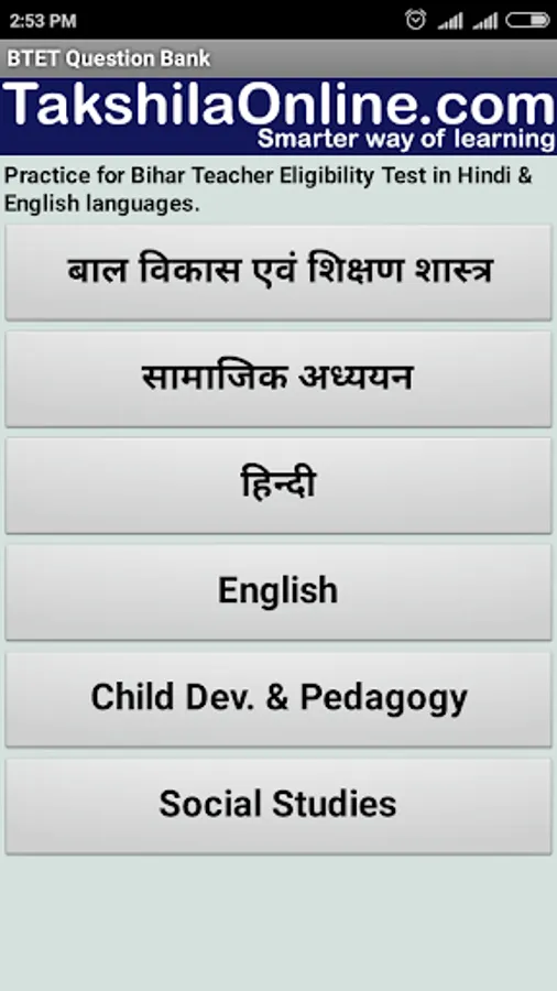 Using this App, aspirants can prepare for various state level TET exams like BTET, MPTET, UPTET, HTET, RTET. The application offers multiple choice questions (MCQ) of following subjects: