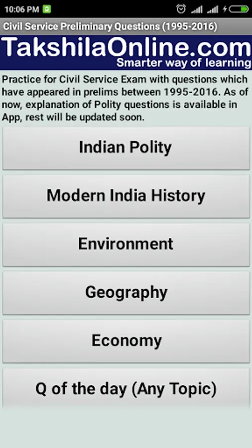 A user friendly app for Civil Service Exam aspirants which will prove to be indispensable for understanding the nature of questions based on the Polity of India asked in the Civil Services Examination conducted by UPSC. Thorough explanations with well researched content, additional information and numerous model questions will help the students understand the concepts of Polity in a simple manner making this app an essential part of every IAS aspirant’s preparation plan.