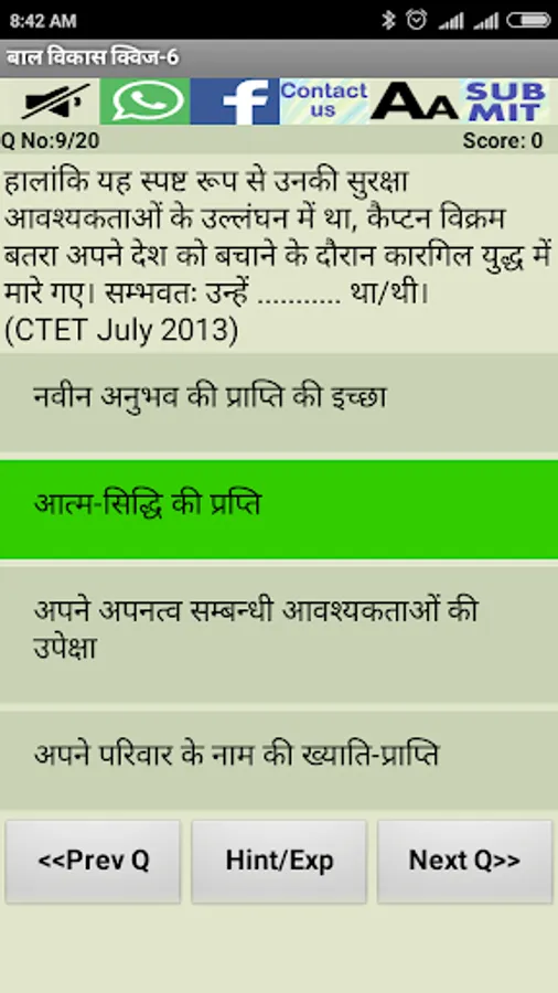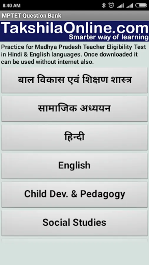 Using this App, aspirants can prepare for various state level TET exams like MPTET, BTET, UPTET, HTET, RTET. The application offers multiple choice questions (MCQ) of following subjects: