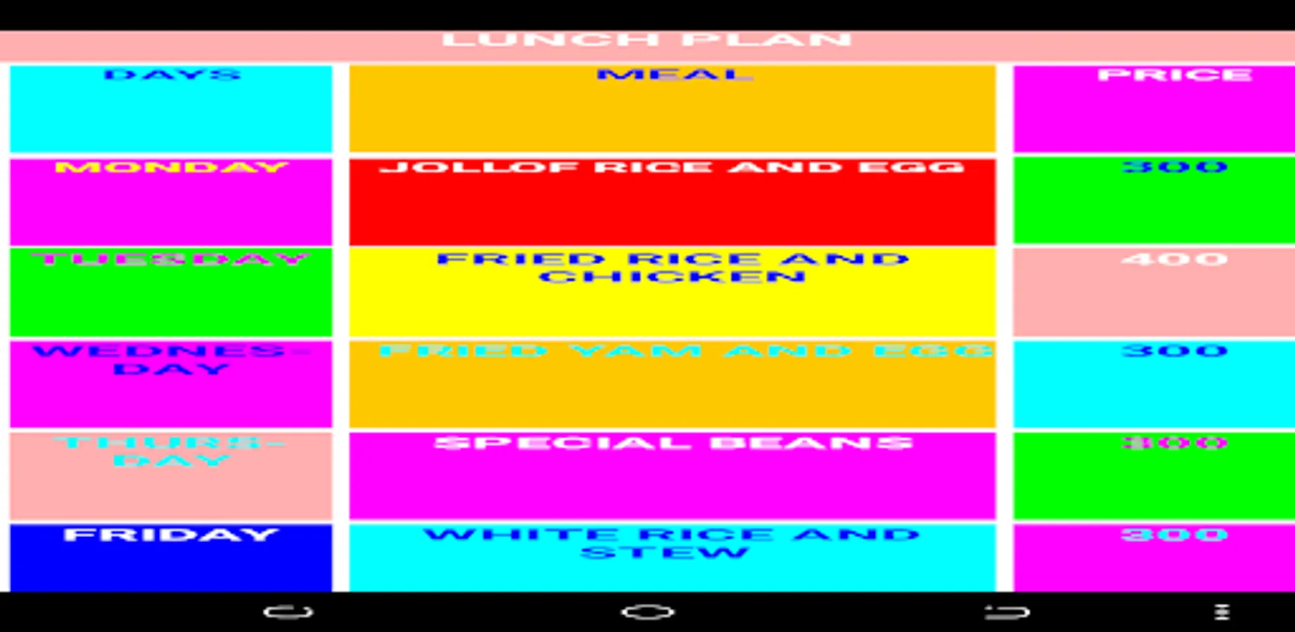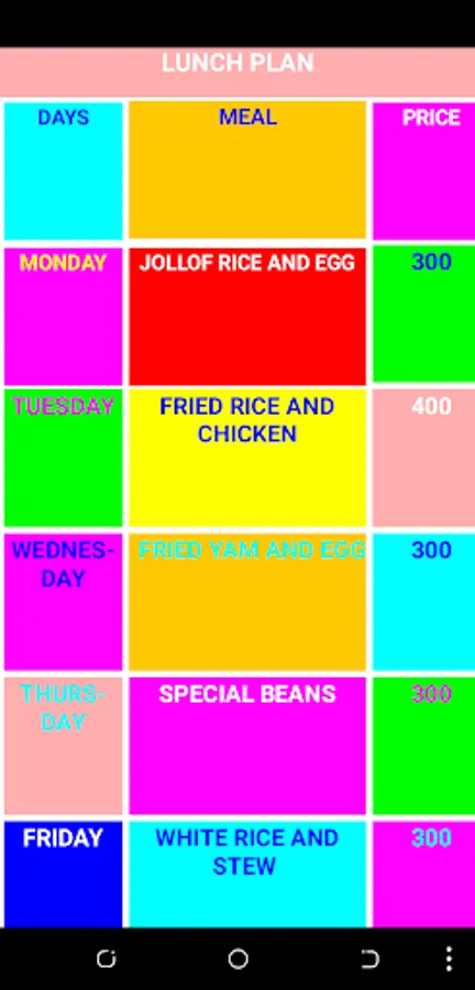 Lunch Plan Designed by Royal Kings and Queens Coding Club