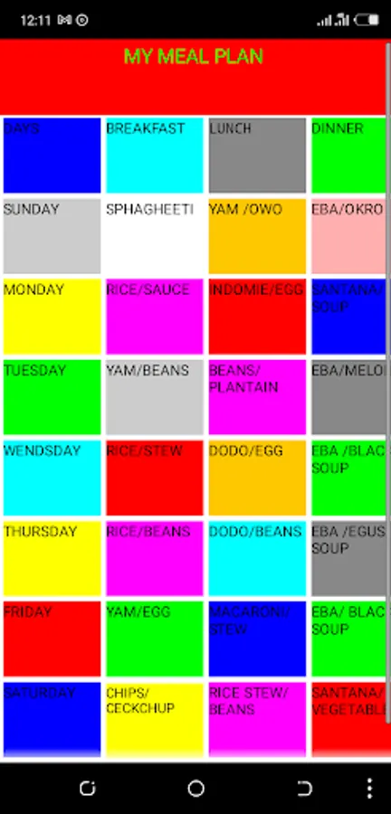 Special Meal Plan designed by ODEH .E. TEGHESE