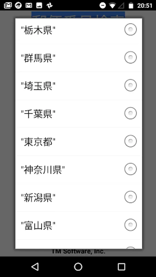 * Launch the app. It takes some time for the state menu display to initialize the database at the first startup. After the second time, the prefecture menu will be displayed immediately.