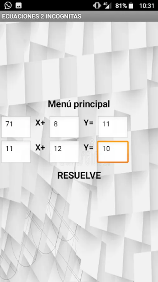 The purpose of the plication is to solve equations of 1st grade, 2nd grade and equations with two unknowns.