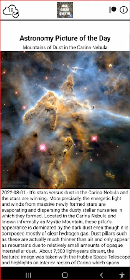 Each day a different image or photograph of our universe is featured, along with a brief explanation written by a professional astronomer.