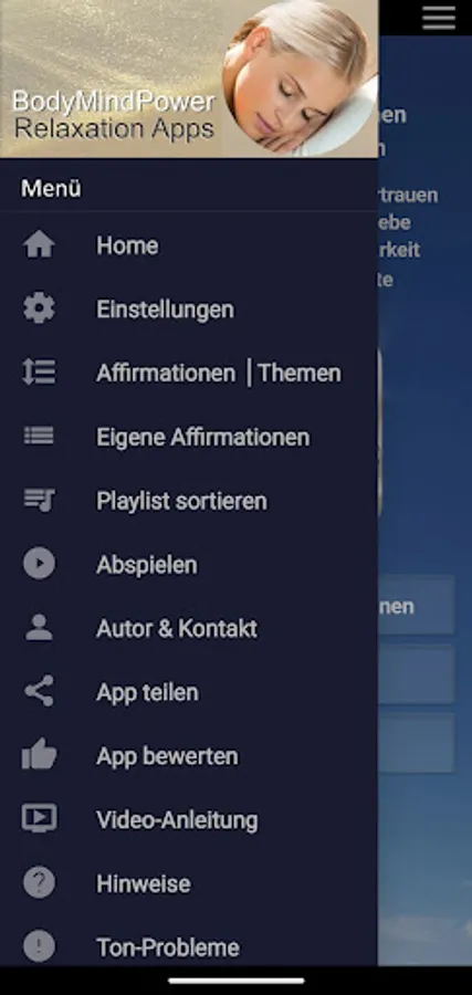 In addition, 6 pieces of music and 25 natural / sounds can be selected, which support and deepen the relaxation and depth effect of the affirmations.