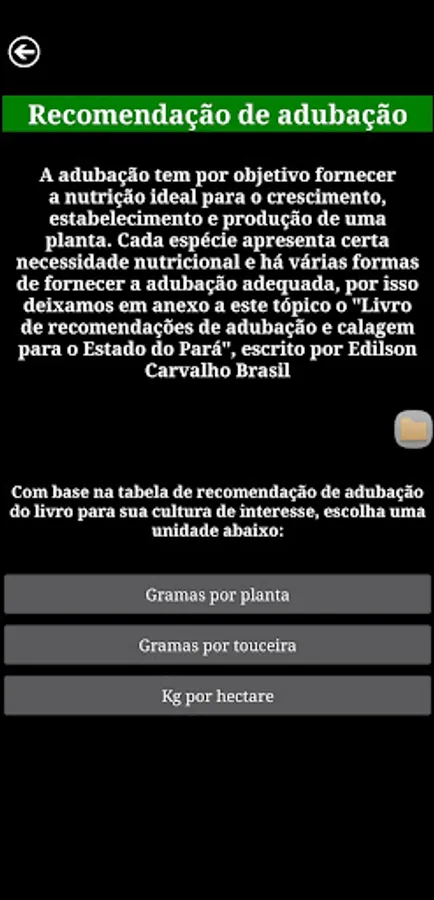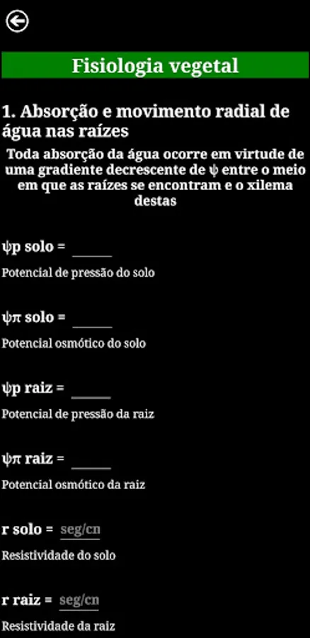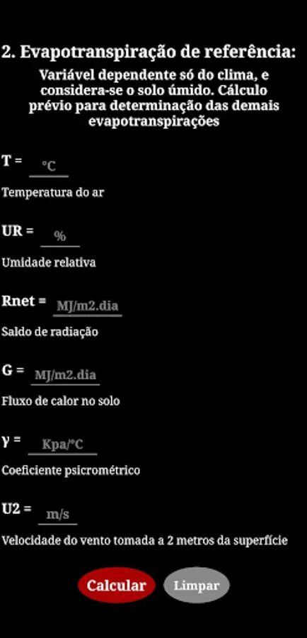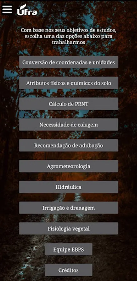 This application is intended to facilitate calculations for agronomy, zootechnics and forestry courses. As well as contributing to the development of undergraduate and graduate students and academic teaching professionals in the aforementioned courses and related areas, in addition to streamlining decision-making power based on the results of the following subjects: