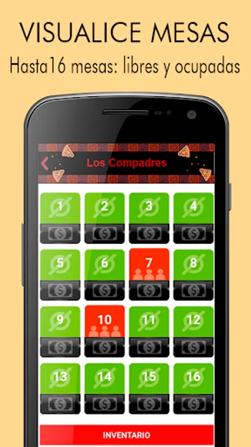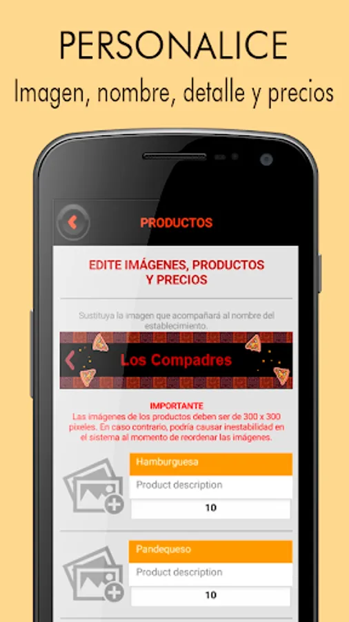 • The application manages up to 16 tables and personalize the digital menu with 14 products (10 with image).
