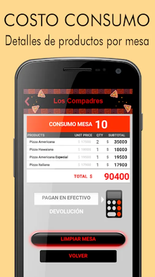 • Detailed account of consumption per table. Automatically release the tables as soon as the order is completed.
