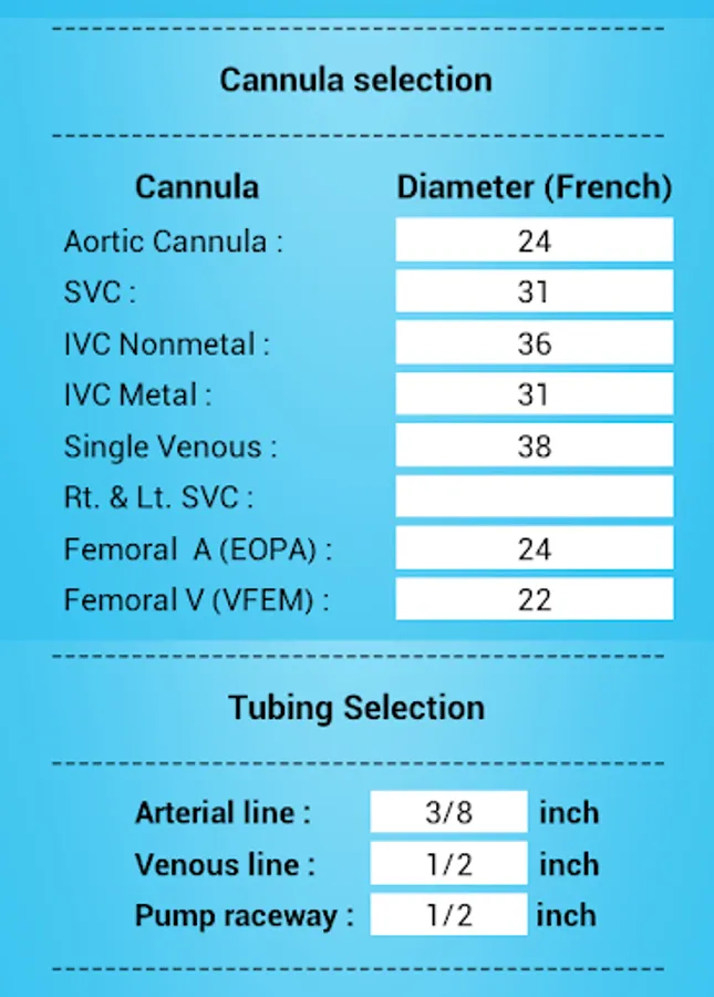 - Aortic Cannula and Venous Cannula Size