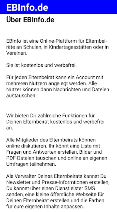 The website EBInfo.de offers you numerous functions for your parents' council free of charge and free of advertising.