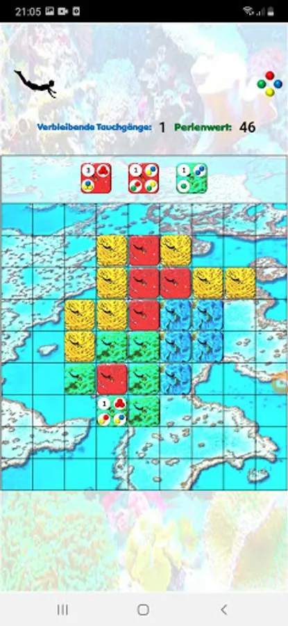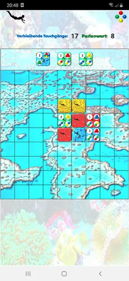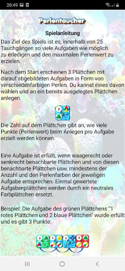 Colored pearls on the tiles tell you which tiles you have to arrange and how to get many points. If you do this very skillfully, you can complete several assignments at the same time and receive a corresponding number of points.