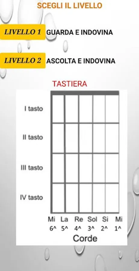 This App was made for students of the "basic level" guitar course promoted by the parish of Pedemonte (VR). Not being able to follow the exercises at home as a teacher, I prepared two levels of exercises to keep the musical brain active.