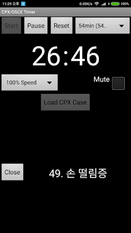 : Start the timer and press the 'Load CPX Case' button. The 'Open' button will appear for you to check the case by opening it like a real exam room. Pressing this button will randomly present one of the 54 CPX topics.