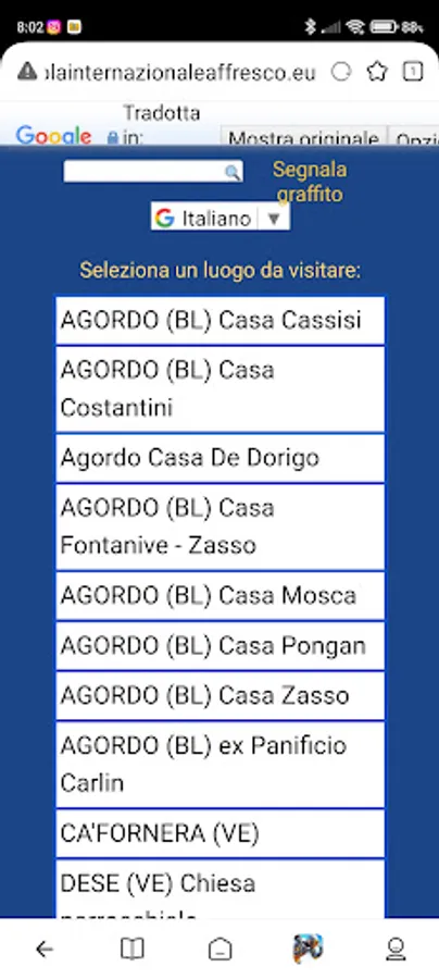 It is possible to report recent graffiti, in order to allow the Association to check on site and, if necessary, catalogue.