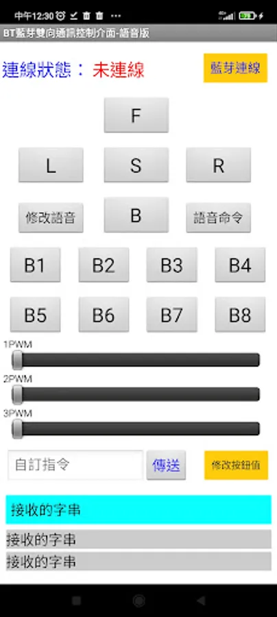 The mobile APP can connect to the Bluetooth of the device to be controlled, and send the default command to the device, and it can also receive the data sent from the controlled device.