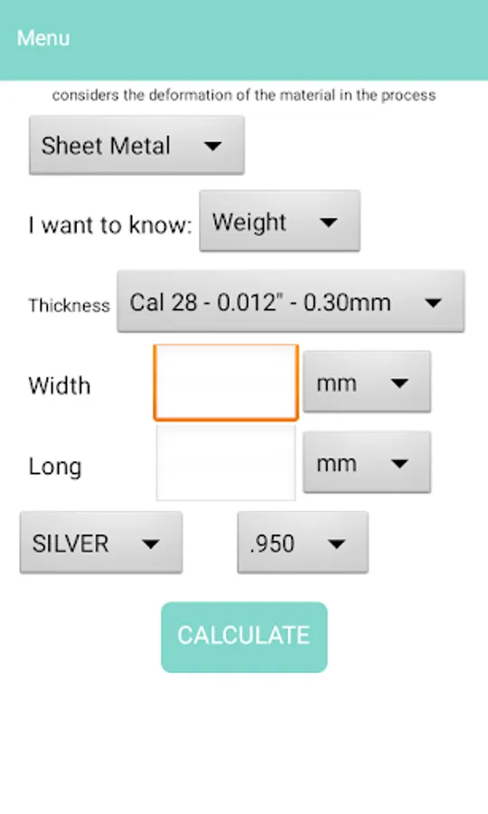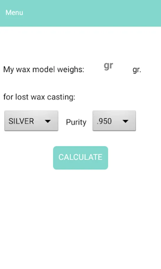 Designed for all people working with precious metals calculator. The Jewellers Calculator automatically calculates the gold and silver alloys used for jewelry. Counting with 3 levels of purity of gold and 2 silver . The weights are expressed in grams .