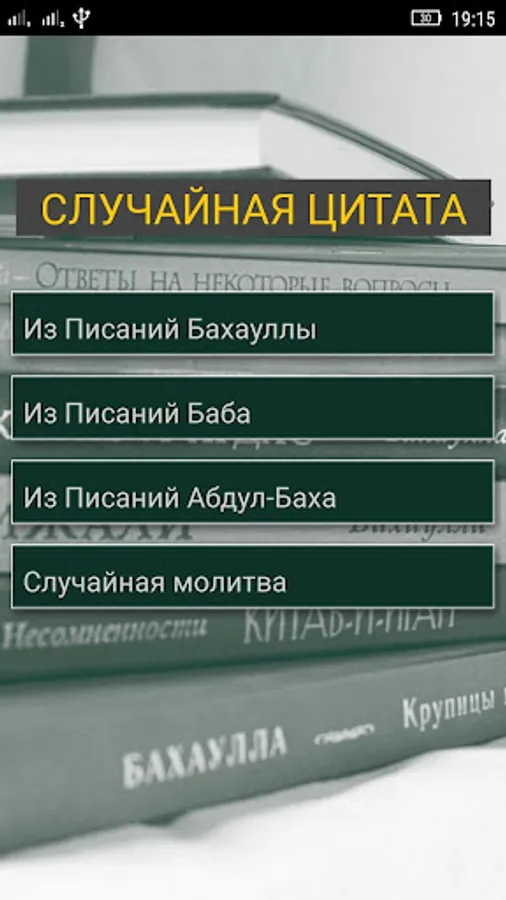 The app is designed so the Baha'is who want to get to reading and meditation quote, randomly generated from hundreds of passages from the Writings of Baha'u'llah, the Bab and Abdu'l-Baha.