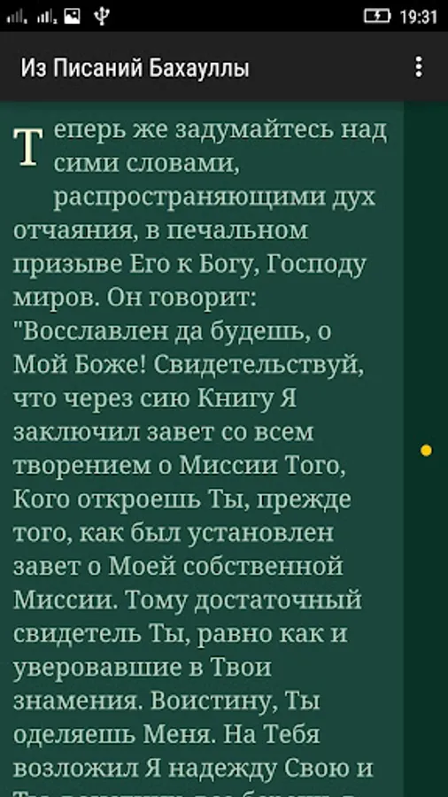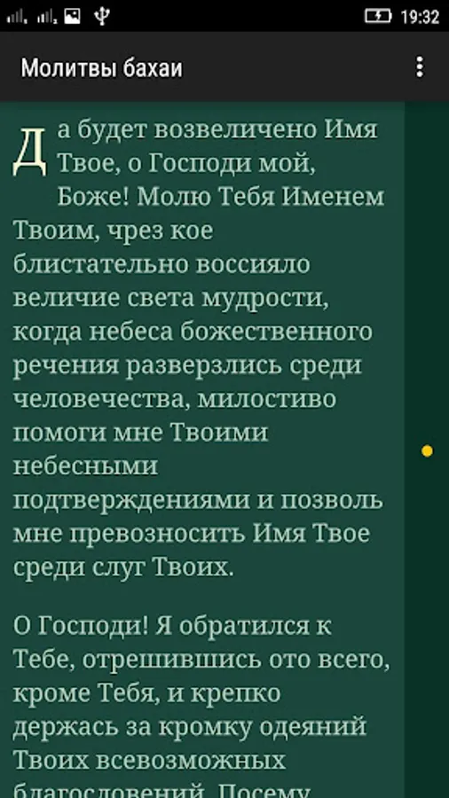 In addition, if you want to quickly select a prayer to be read - you can use this app. It is very convenient. In the prayers except the few most inclusive prayers, which were not included in the edition of the prayer book. They were selected from the Writings of the Bab, Baha'u'llah and Abdu'l-Baha.