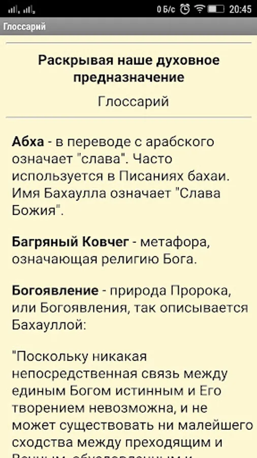 Specially selected extracts from the Writings of the Bahá'í Faith is located in the book so as to help the reader to realize his spiritual duties, the main of which - "... an independent search for truth; For blind adherence to past dulls the mind. But once every soul will begin to investigate the truth, society will get rid of the darkness of the constant repetition of the past. " Any fair-minded person will find that the teachings of the Bahá'í Faith is like the ocean of spiritual treasures in the depths of which are hidden innumerable pearls of advice and instruction. "We can prove that in this life - both in its external aspects, and in secret - the most powerful of dispensations based most firmly, the most durable, keep the peace, providing spiritual and material betterment of humanity and protect the happiness of society and its civilization is religion".