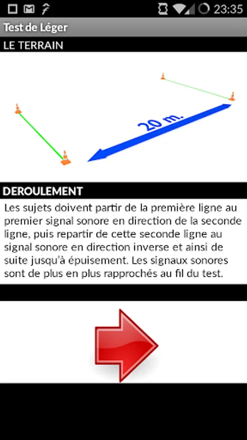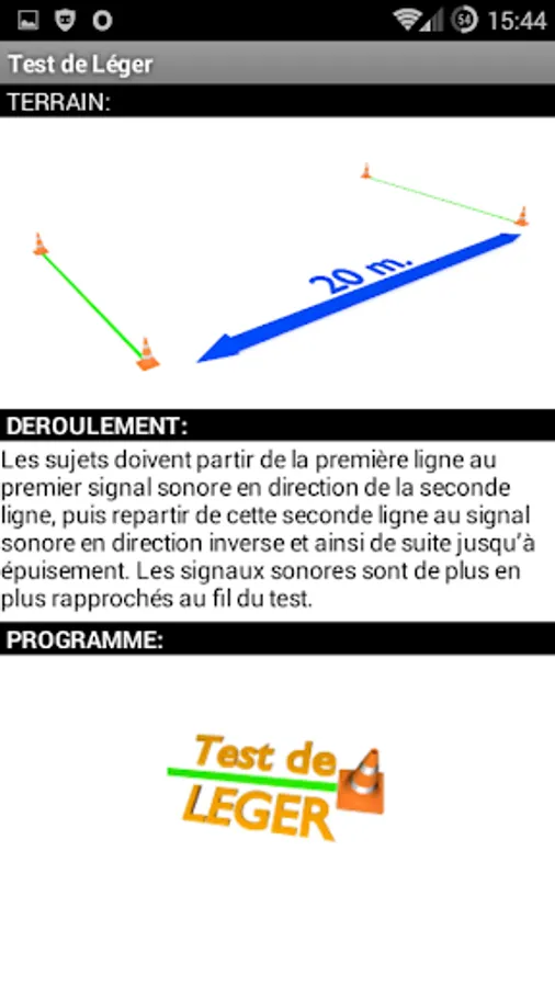 Just have a track 20 meters minimum, 4 blocks to set two lines spaced 20 meters between which people are going to run between the beeps Terminal pocket.