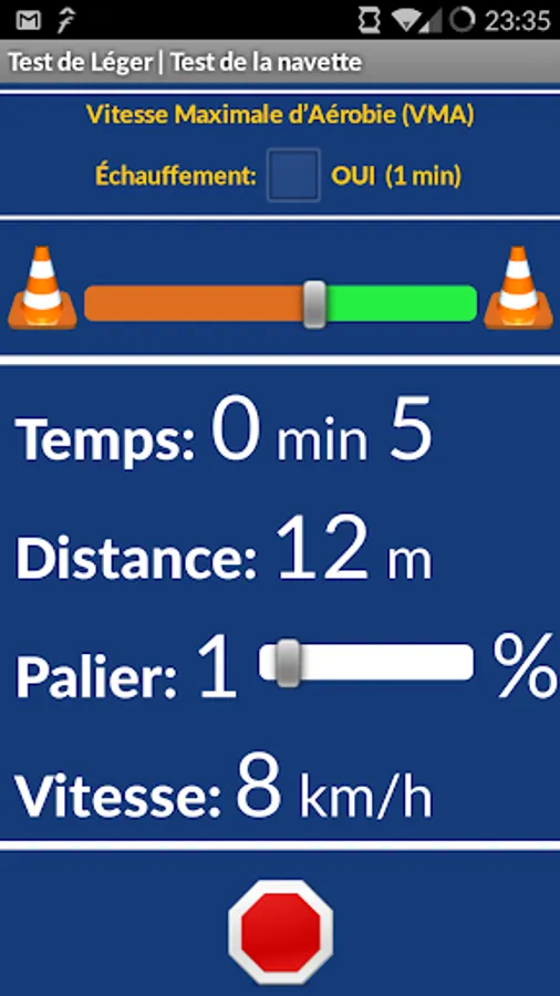 The Leger Test principle is to calculate the maximum aerobic speed (VMA) and estimate the maximum oxygen consumption.