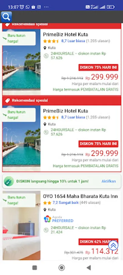 Hotelbox is an application that makes it easy for you to find cheap hotels in Indonesia and around the world. With Hotelbox, you can find the best-priced hotels in various cities that are most frequently visited by Indonesian tourists, such as Jakarta, Bandung, Surabaya, Yogyakarta, Bali, Lombok, and Labuan Bajo.